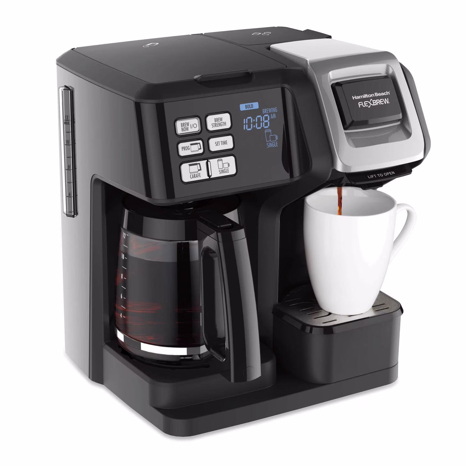 Hamilton Beach 49976 FlexBrew Trio 2-Way Coffee Maker, Compatible with K-Cup Pods or Grounds, Combo, Single Serve & Full 12c Pot, Black