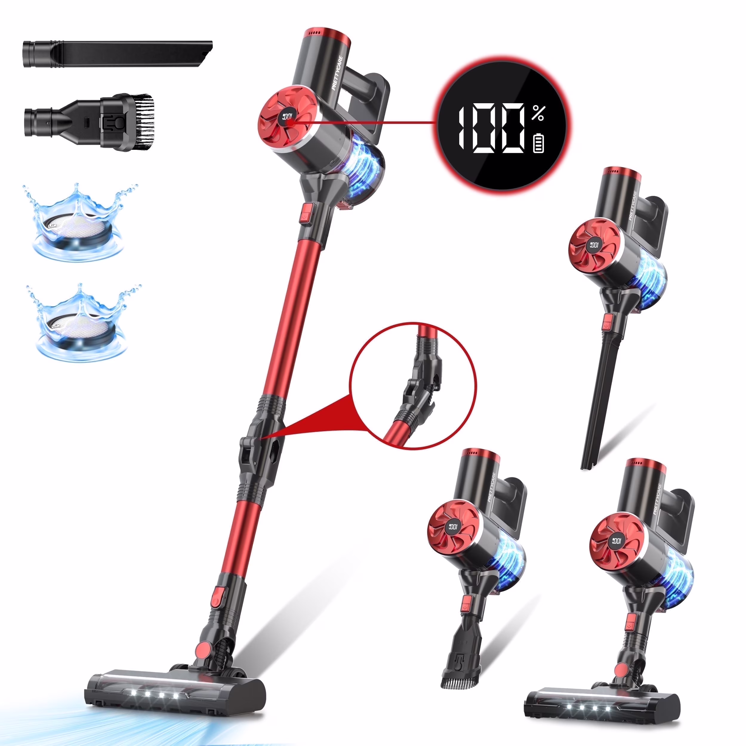 Cordless Vacuum Cleaner, 350W 35Kpa Powerful Stick Vacuum, with LED Display Free-Standing Vacuum Cleaners for Home Pet Hair Carpet Hard Floor S3 (Purple)