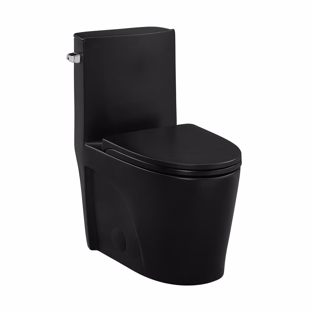 St. Tropez One-Piece Elongated Toilet Left Side Vortex Flush Handle in Matte Black 1.28 gpf