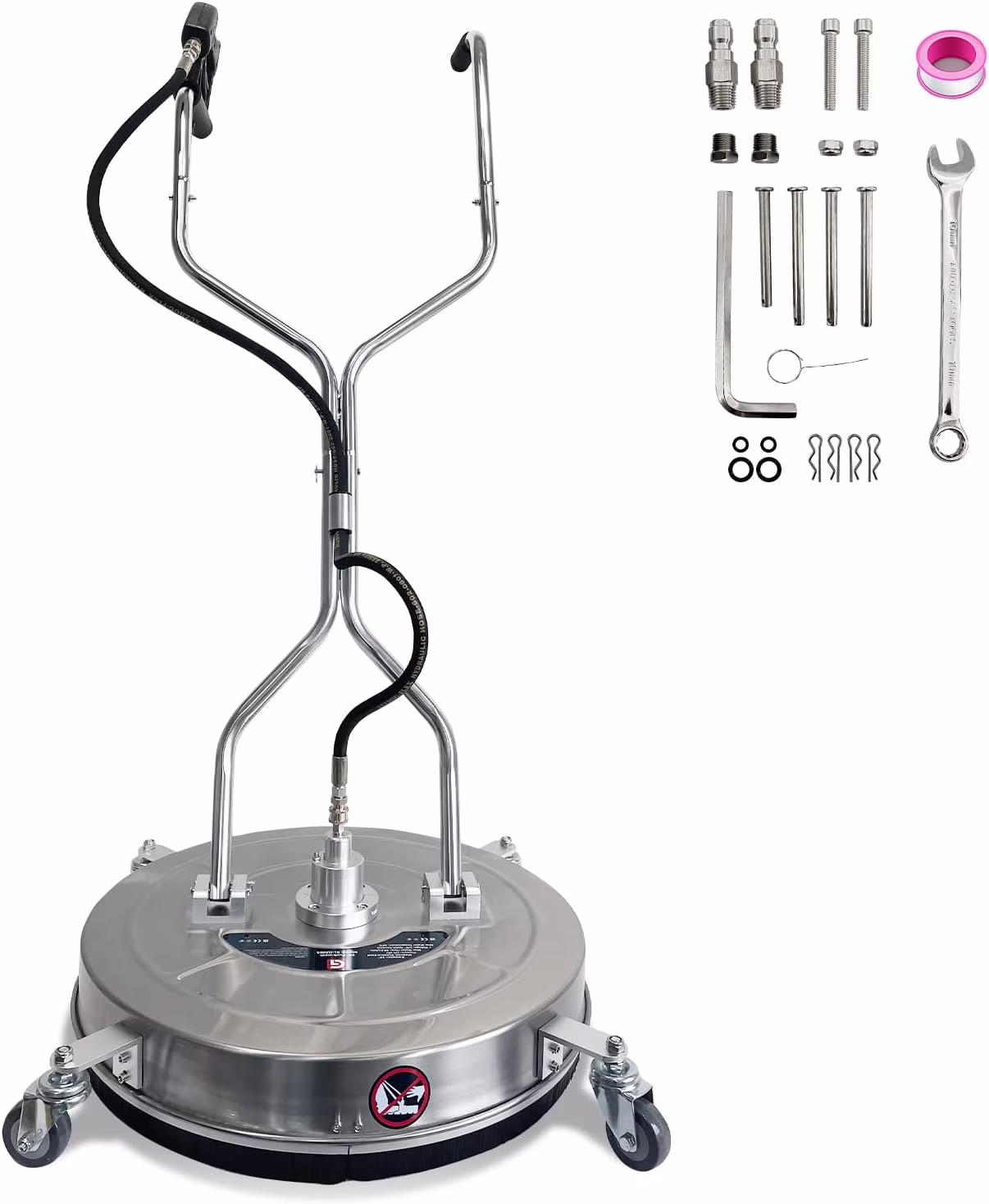 Garvee 24" Pressure Washer Surface Cleaner with Dual Handles �C Stainless Steel, 4-Wheel Design for Driveways, Sidewalks, Curbs, Decks, & Patios �C 4900 PSI, High-Efficiency Cleaning Accessory